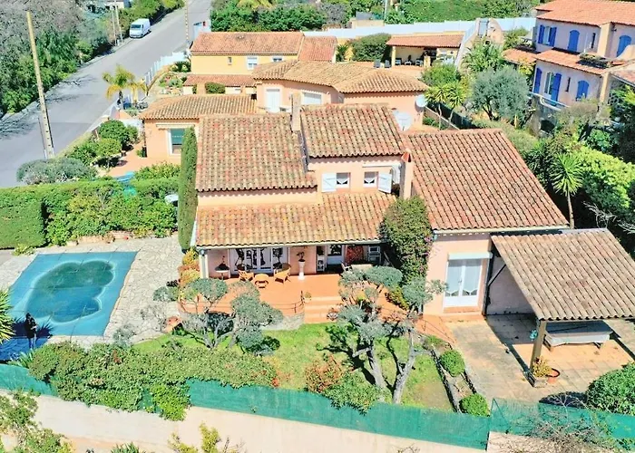 - ❓¿A qué distancia está la Grande Villa Élégante - Piscine - Proche Plages del aeropuerto?La Grande Villa Élégante - Piscine - Proche Plages está a 5 km del aeropuerto Toulon-Hyères, al que se puede llegar fácilmente en 15 minutos en coche.